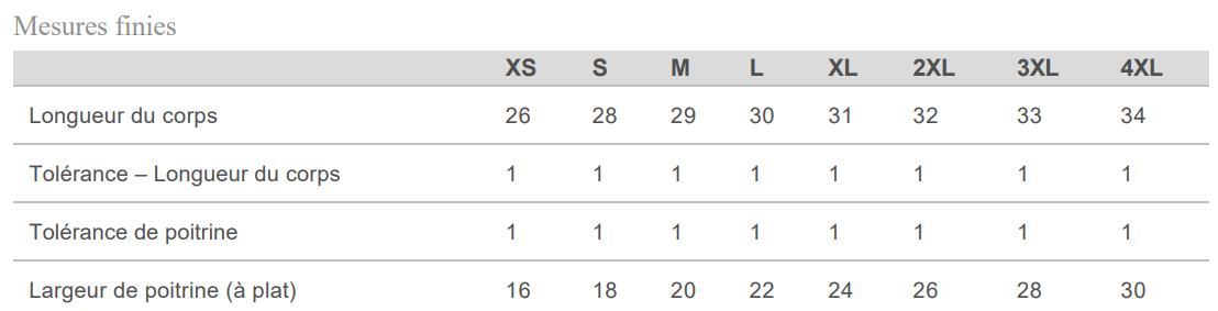 7.4 oz, 100 % coton filé à l’anneau